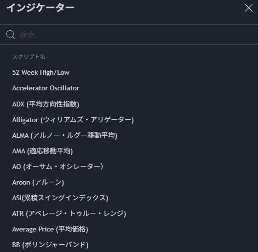 チャート分析に使用できるテクニカル分析指標、描画ツールの種類が豊富