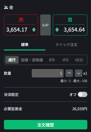 商品CFD取引を始めるためには、最低限必要な証拠金を口座に入金する必要があります。例えば、金の取引を行う場合、最低証拠金は取引開始に必要な最小額です。