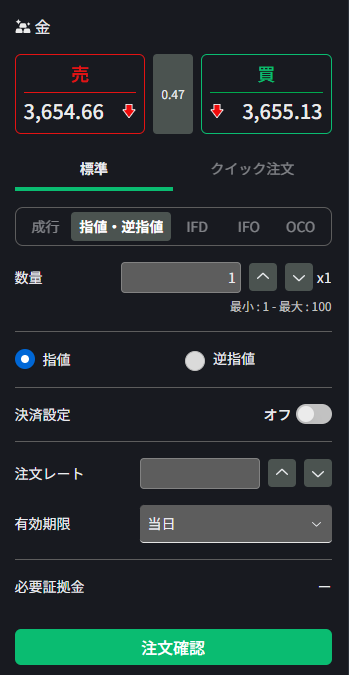 週末: 注文が週末まで有効となり、週末を越して実行されない場合、自動的にキャンセルされます。